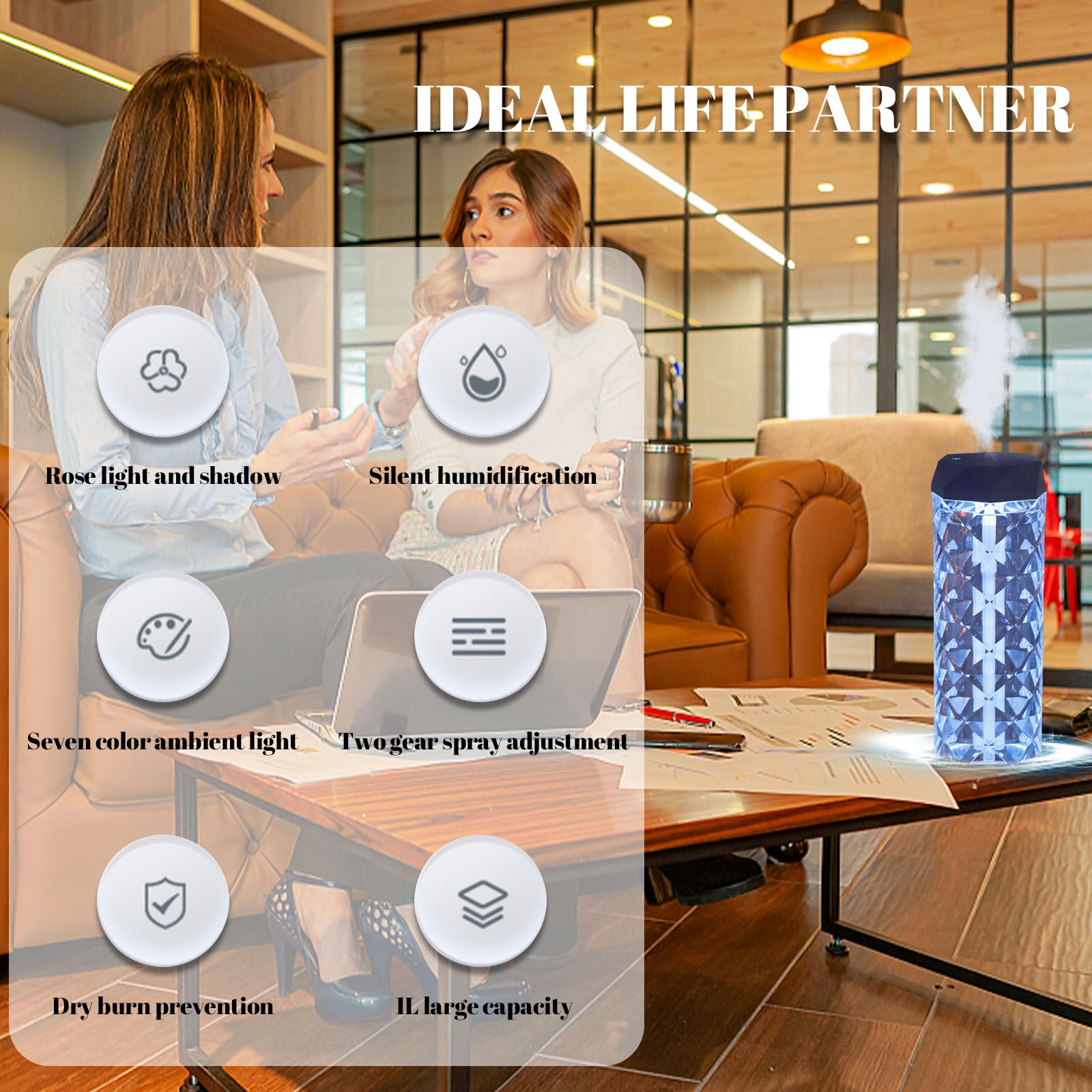 AuraMist Crystal Humidifier,Color Changing Night Light Lamp
